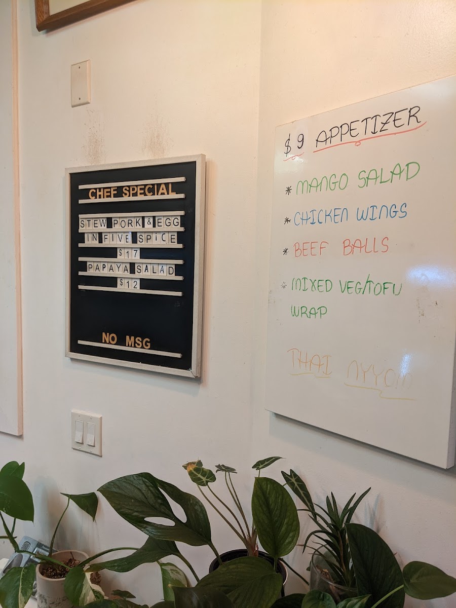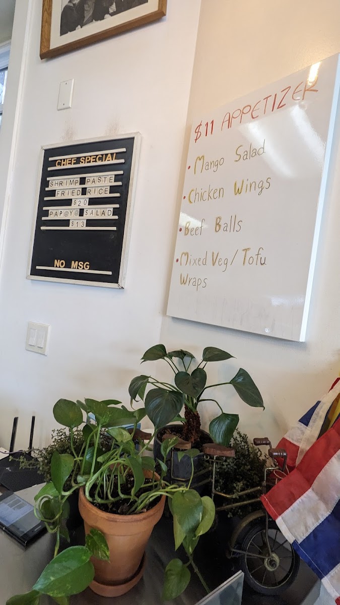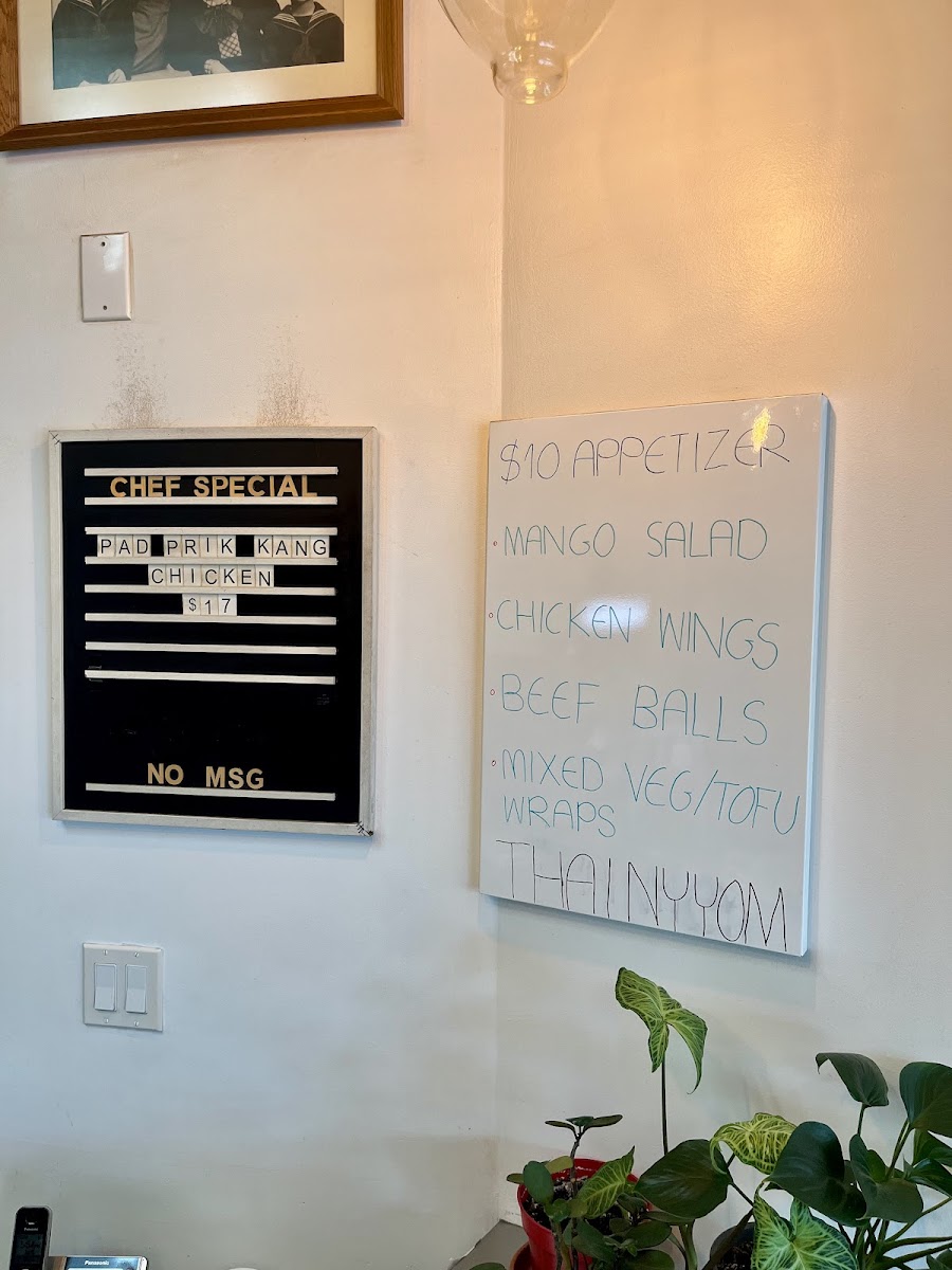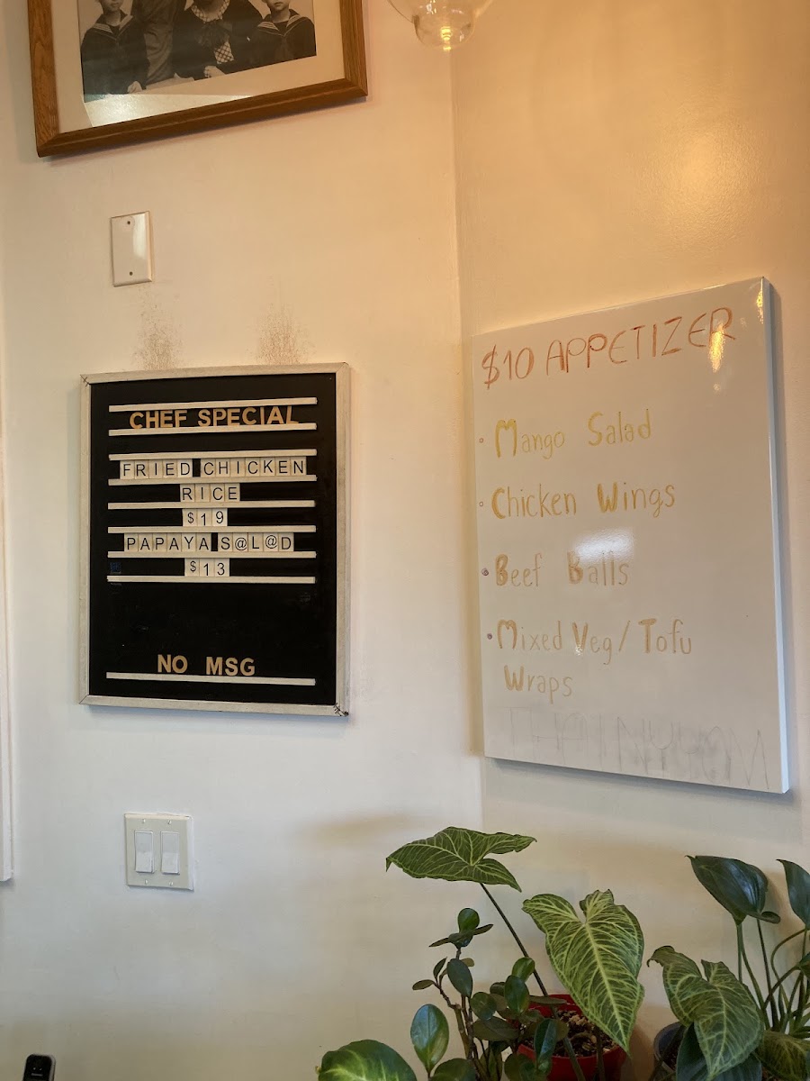 The drinks and extras, including Thai Iced Tea and various sauces, pair naturally with the dishes and support the casual yet attentive atmosphere of the restaurant. Whether stopping in for a midday bite or enjoying a relaxed evening meal, the menu reflects a sense of homecooked care that fits the bright, inviting space and approachable service.